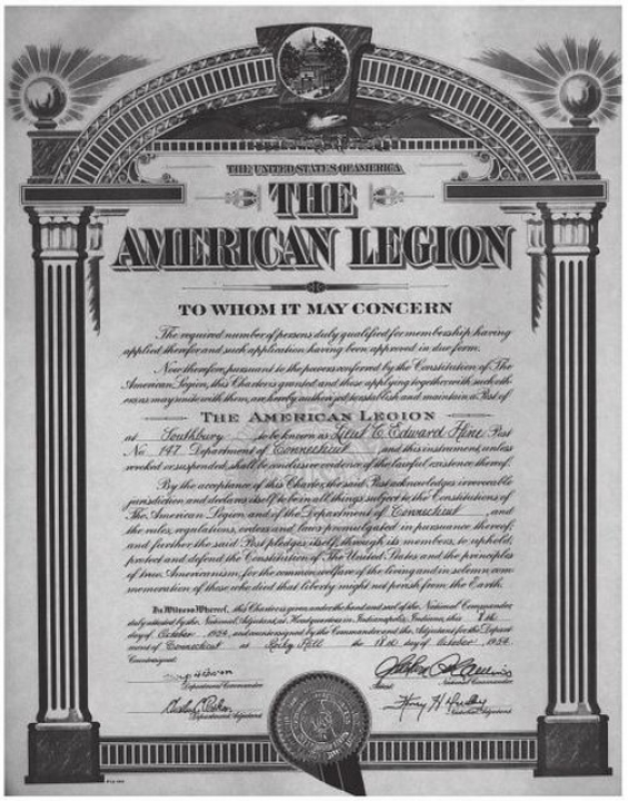 The application was submitted to the Department Headquarters of the American Legion in time for the November meeting of the Executive Committee where it was accepted and laid on the table for one month. On Dec. 7, 1944 at the State Executive Committee Meeting which was held in Litchfield at the Junior Republic the application was acted upon favorably and the temporary charter granted.